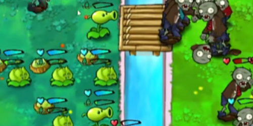 刚进入游戏,映入眼帘的就是两个由豌豆射手组成的防御塔。对战的双方由一条河隔开,我们可以在自己这边布置植物来防守,同时还可以放置僵尸过河,到对岸来攻击对手的防御塔。而我们获胜的条件就是先将对手的两个豌豆防御塔打掉,接下来在攻击他的主塔即可,这个玩法和皇室战争有异曲同工的感觉,但是它在其基础上加上了防御,我们可以放置植物来防御对面的僵尸。