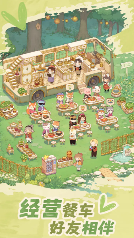 朵拉的露营餐车,用非常可爱的动画风格,呈现出了一个治愈的场景,游戏里玩家可以经营一个属于自己的快餐车,不但可以售卖各类烧烤,同时还可以在周边直接经营一家花店,能自行选择自己喜欢的花朵品种进行培育和种植,养成之后更是能直接放到花店里售卖,在经营过程中,遇到的都是各类拟人化设定的小动物,可以通过售卖给他们各类菜品和鲜花,建立丰厚的友谊。