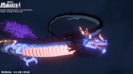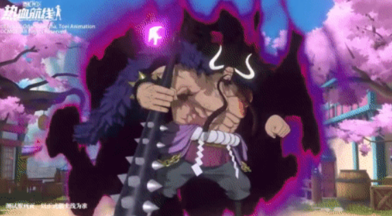 凯多的登场动画一开场就是一条巨龙在空中盘旋,宛如天地间的主宰,随着巨龙的落地,他化身为人形,巍然屹立。背景的樱花飘舞,恍若进入了和之国的核心地带,气氛营造得相当到位。