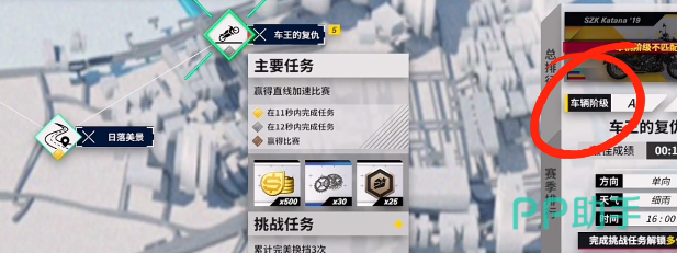 这一个关卡其实就会有一些限制,例如在挑选车辆时就会有一些限制,不能任意的选择,一般只可以使用A级车。大部分的情况下,玩家可能会已经拥有满足要求的车,拥有满足要求的车,那么在通关时就比较简单。