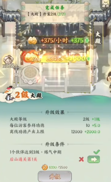 大殿升级后,单次访客带来的功德收益显著提高,离线挂机期间的功德获取效率亦同步提升。在灵币充裕的前提下,应优先提升已开放建筑的等级,形成资源—产出—升级的正向增长闭环,从而加快整体发展节奏。