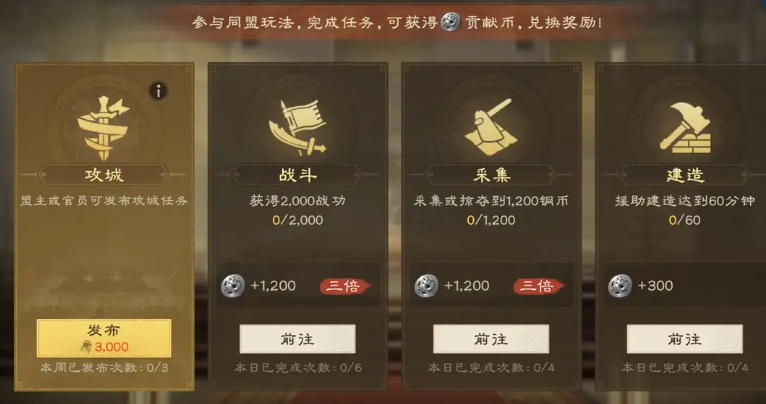 管理者应合理规划征程任务,将其分解为日常可执行的小目标,激励成员持续贡献。每周三次的攻城任务是同盟活动的重要组成部分,也是合法夺取他人城池的主要方式。在规定时间内成功攻占指定城市,不仅能获得丰厚奖励,还可享有该城池带来的稳定资源产出。同时,常规的战斗、采集与建造任务则是积累贡献币的主要途径。这些货币可在民丰坊兑换稀有道具,优先换取高折扣资源箱或加速类物品,有助于加快发育进度,最大化资源利用效率。