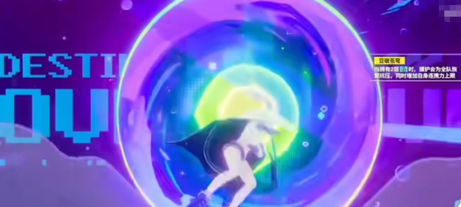 她的终极技能名为“豆破苍穹”,归类为援护技。要充分发挥此技能的效果,需要角色提前累积至少两层正面增益状态。释放后不仅能为全队提供较高数值的生命恢复,还能提升自身连携力上限。经过此次强化后,下次触发连携技能时所获得的增益效果也会相应增强。因此,“豆破苍穹”并非每回合都能高效使用,需合理规划释放时机。