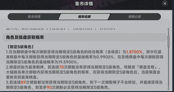 硬保底机制设定为90抽强制触发:第90次掷骰将跳过棋盘移动环节,直接解锁当期限定S角色。无论前期运气如何波动,目标角色最晚于90抽内必定获取,彻底消除“无底洞”焦虑。更关键的是,保底进度支持跨卡池继承——不同限定池间共享累计抽数,无需为新池重置积累,显著降低长期养成成本。经数学建模测算,该卡池的期望抽数稳定在53抽左右,兼具效率与公平性。