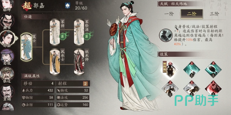 游戏初期资源稀缺,需明确优先级,避免平均投入。建议第一时间将郭嘉与张辽升至二阶。郭嘉达到二阶后,普攻射程增加1格,远程压制能力大幅提升,战场定位更加清晰。