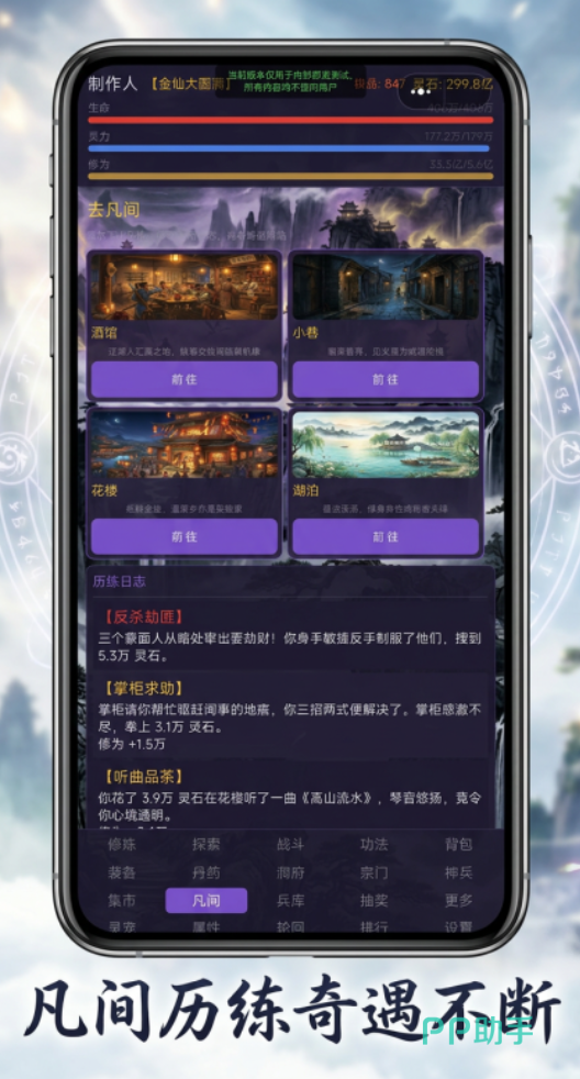 “花楼境遇”与“赌坊反制规则”两大特色玩法,共同拓展了修真世界的叙事维度。前者以人物关系链为驱动,触发不可预知的因果事件,可能引发境界跌落或隐性气运变动;后者则引入高风险博弈模型,在丰厚收益背后设置多重变量干扰,要求玩家综合评估资源储备、当前战力与运势状态后作出决策。二者均非单纯数值对抗,而是对修真生态复杂性的具象还原。