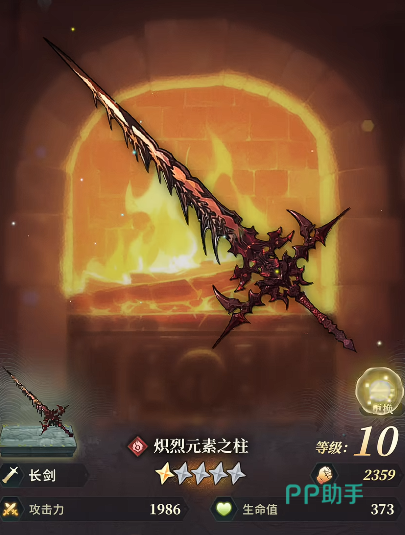 炽烈元素之柱:火属性长剑,基础攻击力2073,附加326生命值。其奥义可对敌方单体施加火属性伤害,并为全体我方角色提供持续3回合的增益效果——火属性攻击与技能攻击各提升10%。该特性使其成为火系核心输出阵容的优质启动器,尤其适合搭配依赖多段技能循环的火属性角色,在首回合即奠定团队输出节奏优势。
