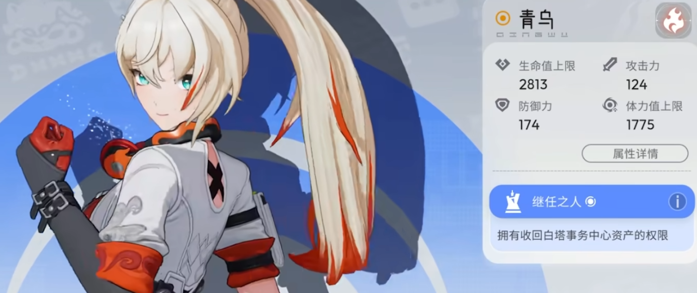 青乌隶属月能管理局外勤队,是一名火属性高爆发输出角色。其标志性技能“闪射回旋”兼具位移机动性与持续灼烧伤害。战斗核心机制为“光域”:每层光域均可叠加,叠至三层时激活终结技“天光如灼”,释放大范围高额火伤,并附带禁疗效果,专克依赖回复的敌人。技能树培养须聚焦于加速光域叠层效率与最大化灼烧倍率,精准把握爆发窗口期,使其成为战场上的高效清场主力。