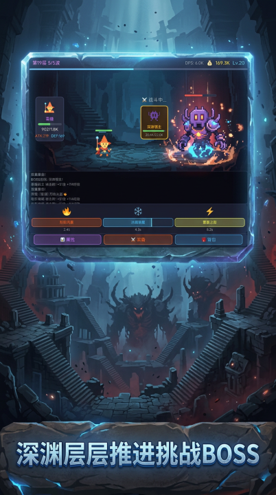 游戏采用竖屏轻量化设计,适配通勤、午休等碎片化场景,支持自动战斗与手动微操双模式切换。既可一键挂机稳步发育,也能在关键Boss战中精准释放技能、调整走位,兼顾效率与操作深度。每层深渊结构、怪物配置、掉落词条均存在差异,重复游玩不枯燥,探索感持续在线。