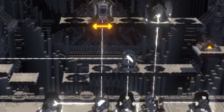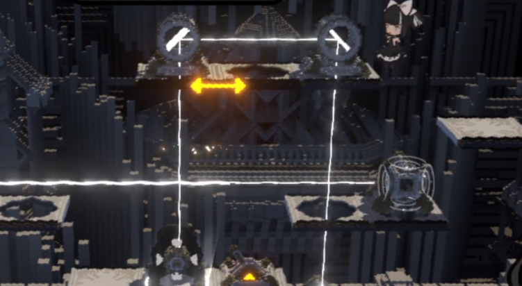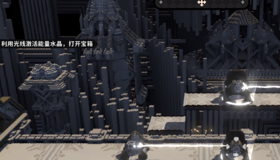 第二关需向前推进至开阔平台区域。触发交互按钮后,镜面会自动翻转向上,实现光线传导。此时可先将平台降至地面,随后向左移动并再次翻转镜面装置,调整右下角的反射镜方向,确保光束能顺利传递至右侧目标区。第三关位于海恩城场景内,开局建议迅速抵达第二个互动点,翻转镜面使光线垂直上射,同时激活机关结构。之后将平台下降以预留跳跃空间,只要确保与第三个平台对齐,便能稳定通过。