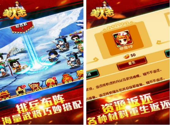 这款热血的三国卡牌游戏,不仅能帮助大家,享受挂机游戏所带来的独特魅力,更有三国时期的诸多美女角色以及武神角色。在展开厮杀的过程中,需要通过对名将升级等方式就能做到。同样采用的是q版的形象进行设计,无论你是想要与里面的家人幽会,或者是想要在攻打城池的时候,利用实力征服世界,都有丰富的内容,包括精美的服装系统,也能使里面的女性角色更漂亮。