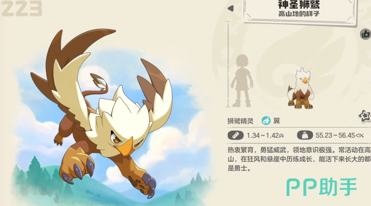 以崖间地外观的神圣狮鹫为例,玩家可以在王国监狱上方的黄色区域进行寻找。该形态下的精灵在物攻、物防以及速度三项属性上表现尤为突出。其特性为“乘风连击”,当使用“翼”类技能后,可使后续攻击的连击次数增加1次,提升持续输出能力。