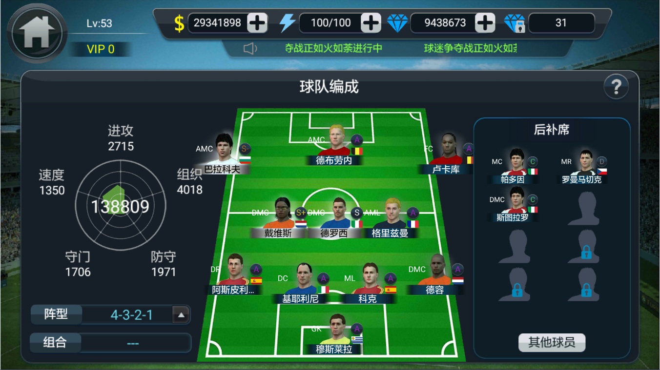 《足球在线4》给玩家提供了足够逼真的球员系统,每位球员能力都进行实时跟踪,跟现实中的水平相差无几。游戏里面存在大量巨星球员,等待玩家去解锁。游戏中很细节的加入了庆祝动作,每次取得进球后都有专属庆祝时间,不错过任何一个细节的设计。甚至还能找到中超俱乐部,把自己家乡球队打造成世界豪门,会更有成就感。