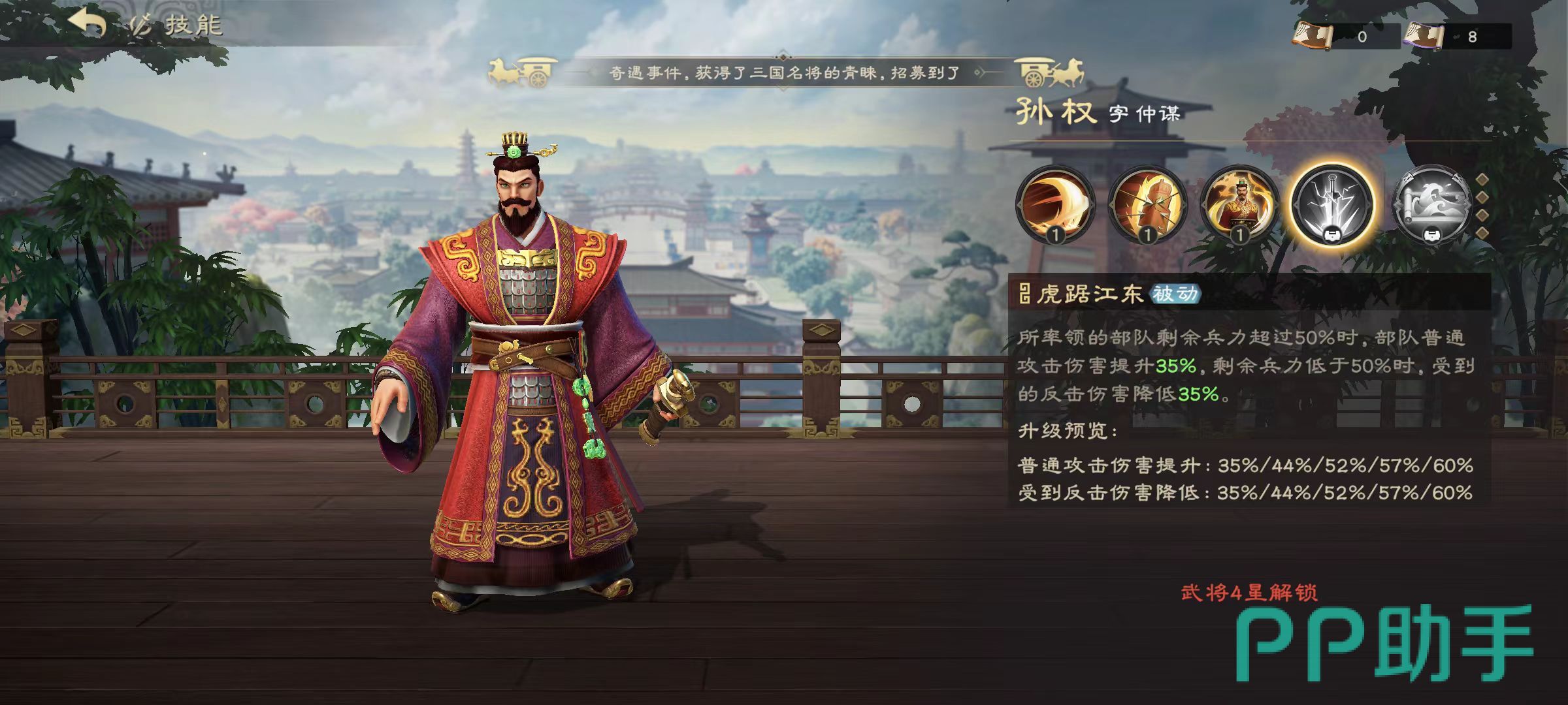 该阵容的核心成型节点为孙权与曹丕均达到三星。当孙权升至三星后,其技能可为部队提供显著的普攻暴击加成,而曹丕在三星时也能有效提升自身暴击率与暴击伤害,两者叠加后能形成持续高额输出能力。技能升级方面,建议优先提升孙权的三星与四星技能,曹丕同样需重点培养三星及四星被动,确保输出循环稳定。
