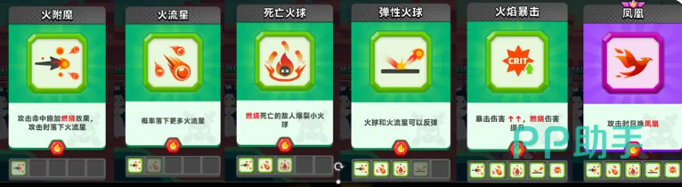 这种连锁爆炸机制显著提升了群体清场能力,尤其在面对大量小怪时优势明显。进入中后期挑战高血量BOSS时,则建议激活“凤凰”召唤技能。此技能可在每次射击后召唤一只沿固定路径飞行的火焰凤凰,持续对沿途敌人施加高额火属性伤害,无需手动操作即可稳定输出。另一个可选强化为“弹性火球”,它能使释放出的火球与火流星具备反弹能力,在多个敌人间弹跳,从而扩大攻击覆盖区域并提升总伤害量。
