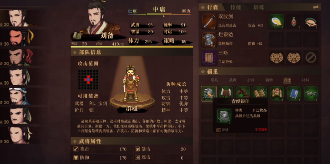 而在升迁的过程中,到底应该如何来操作呢,玩家来到游戏主界面,在弹出的菜单栏这边就能找到武将升迁的选项,而要想让武将迅速的升迁,那自然就需要选择一些合适的道具。例如玩家想要升级刘备,那在此时就需要使用青铜虎符,也就是青授银印,这就是一个辅助升迁的道具,在点击之后就可以迅速的完成升迁。