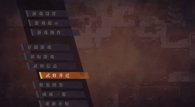 在完成升迁的操作之后,武将才可以跟着升级,但是武将升迁的入口到底在什么地方呢。其实就隐藏在游戏主界面的菜单栏里面,这个设置还是比较奇葩的,和以往的游戏会有所区别,确实会让大家有一些摸不着头脑。
