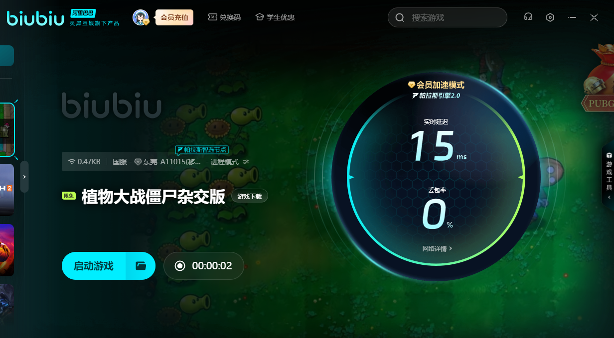 pvz杂交版中的节奏颇快,因为卡而操作失误的话会影响最终的胜负。这时可以利用biubiu,提速过后就能准确的将不同的植物摆放在正确的位置上,这样就能轻松消灭各种僵尸。新用户的话可获得3小时的免费加速,然后新老用户输入【biubiu不卡顿】,额外获得三天免费加速。如果成群的僵尸涌过来时延迟高,那我们就无法及时做出防御,从而让自己的家园沦陷。用上加速器后,又能及时做出防御,避免自己成为战争的牺牲者。