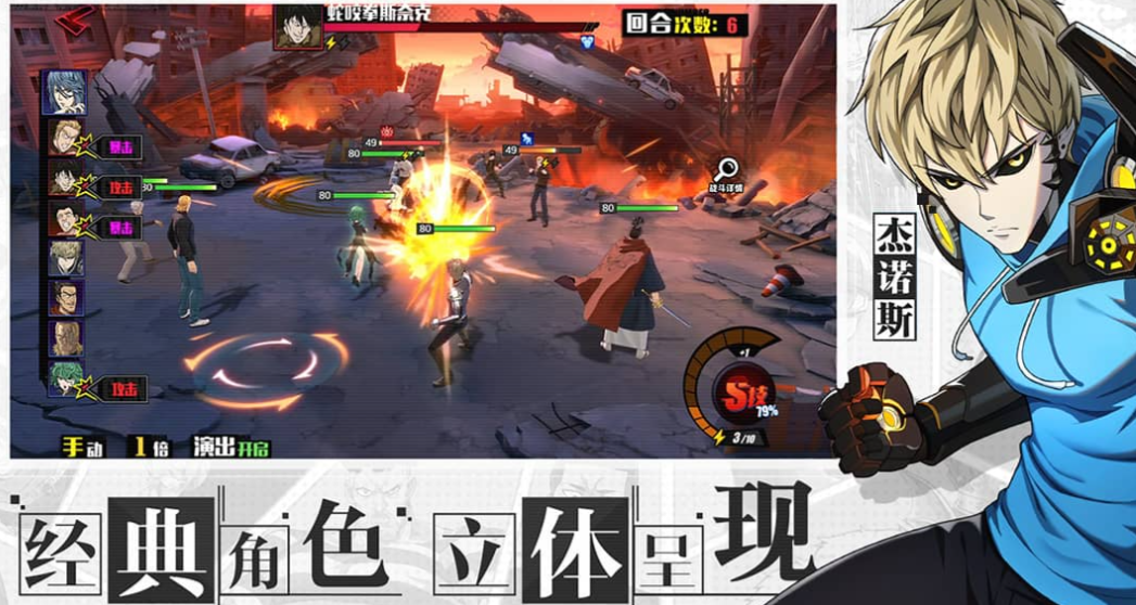 本作是款使用了3D立体视觉效果呈现的漫改回合制佳作,二次元画风与一拳超人动画的剧情渲染都很有代入感,琦玉、杰诺斯和原子武士等英雄等待着朋友们依次召唤,深邃的剧情演绎+超炫的技能效果更是深入人心,差异化升级机制也会让队伍的整体实力大增,进入一拳超人世界中组队冒险会给你带来别样的感觉。