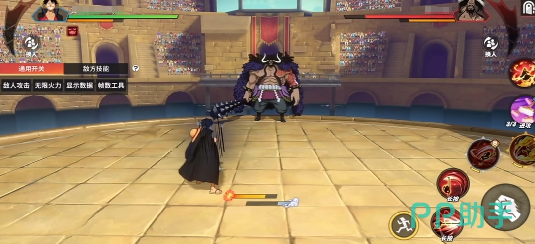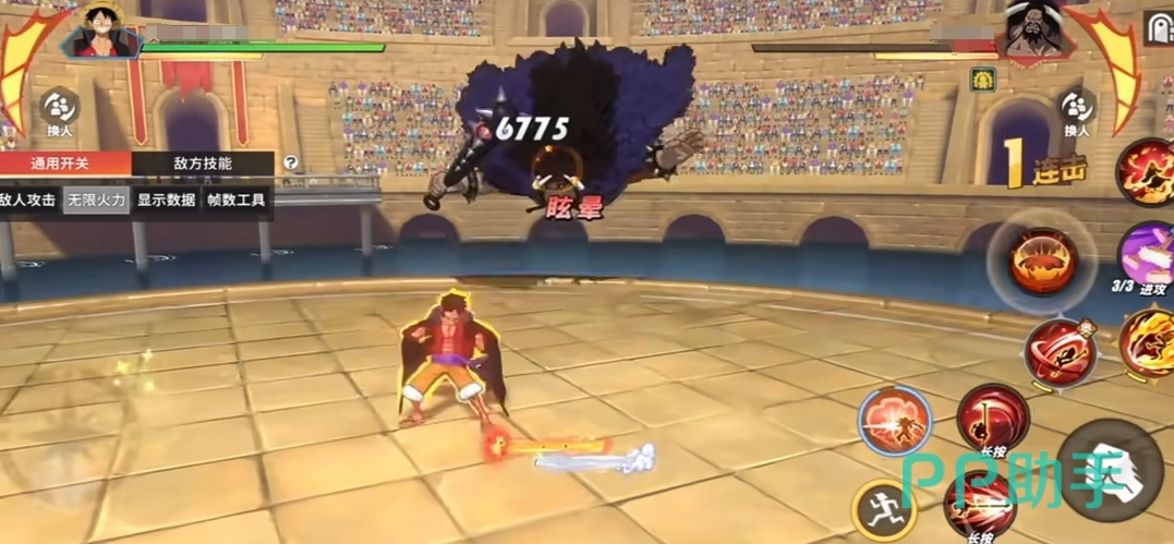 角色设计上引入双能量条系统。黄色能量条通过在二档或三档期间施放技能进行充能,充满后路飞周身将泛起金光,此时所有技能及普攻第三、第四段均附带眩晕效果。只要该能量未完全耗尽,此增益将持续生效。另一条白色能量条用于激活变身状态,总容量为20点,每次使用技能可获得1点充能;若在释放技能后切换档位(例如二档释放一技能后长按进入三档,并再次释放一技能),则可一次性获得5点充能,大幅提升变身效率。