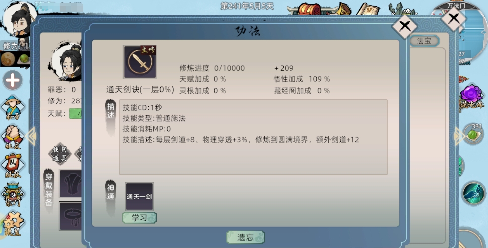 剑道功法专注于战斗,提升剑术、物理暴击、物理攻击和物理穿透,与其他功法相比,剑道功法在突破大境界方面的帮助不大,但在实际战斗中非常有效。高水平的剑道和物理暴击率能够在近战中造成可观的伤害,而最高的物理攻击和物理穿透则能有效击破敌人的防御。