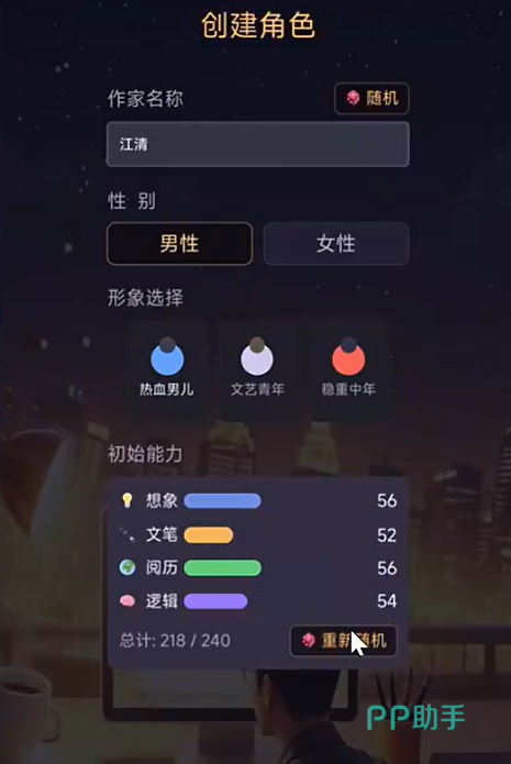 无需反复查询上线时间,只需点击上方入口下载九游APP即可完成预约。作为国内主流游戏分发平台之一,九游不仅提供第一时间的新游动态推送,还为预约用户准备了专属礼包、零元首充福利等多项权益。此外,每日签到还可参与抽奖活动,轻松积累资源,助力开局起步。本作是一款以网文行业为背景的轻策略模拟游戏,开局需自定义角色基础属性,包括姓名、人设设定及各项能力数值;若对初始配置不满意,支持一键重置随机生成,开启不同路径的创作人生。