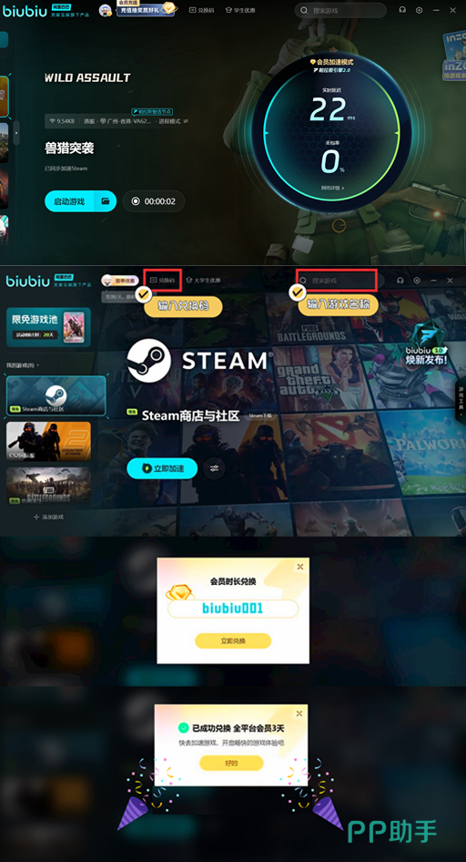 另外还可能和网络问题有关,如果网络卡顿将导致游戏的下载速度比较慢,玩家可以选择一款加速器。biubiu加速器就可以领取免费加速时长,新用户如果是第1次注册,可以获得3小时加速时长。还可以来到加速器的页面,复制通用口令【biubiu001】可以延长72小时,将这两者结合在一起,可以免费长达75小时。