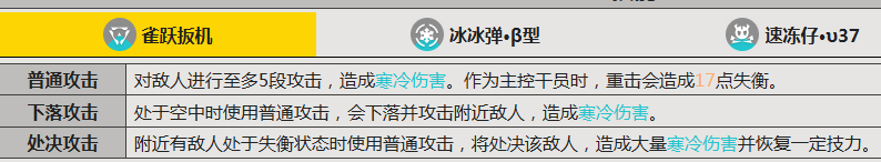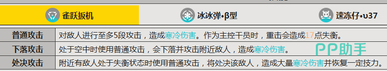在实战应用中,伊冯具备出色的失衡压制能力:常态普攻即可打出五段连击,主控状态下重击可造成17点失衡值;配合处决攻击机制,对失衡单位发动时不仅造成高额伤害,还可恢复自身力量值,从而支撑持续作战循环。其核心技能“制冷弹”兼具控制与输出双重职能——爆炸后若成功冻结敌人,将在延迟后追加一次额外伤害;连携技能则侧重群体压制,部署即刻释放能量波,并牵引周围敌方单位,有效优化团队输出环境与站位安全。