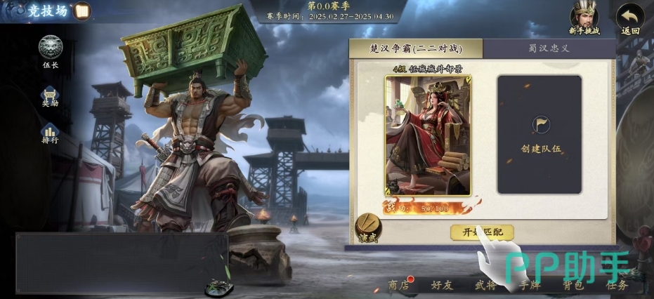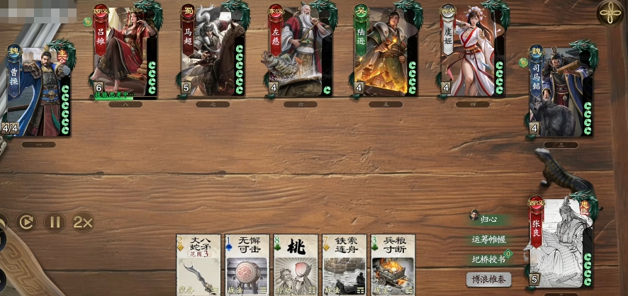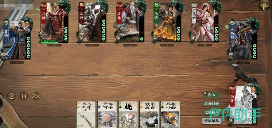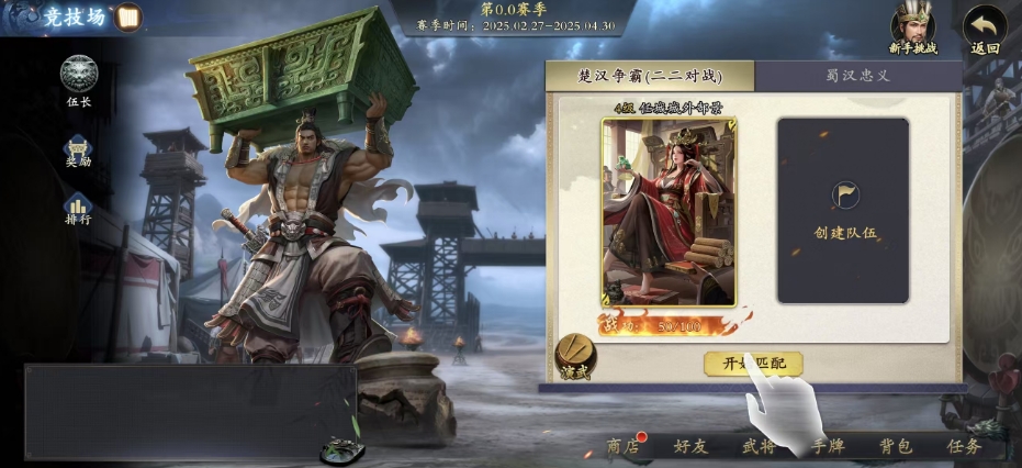 接下来再详细介绍一下楚汉争霸模式,也就是大家俗称的二二对战模式,这个模式独具特色由四名将军参与其中,玩家们将会被随机分配楚军或汉军身份,一旦身份确定,其胜利目标是消灭所有敌方角色,在这个充满激情与挑战的模式中,有一个十分有趣的设定,那就是玩家可以查看队友的手牌情况,这一设定打破了传统卡牌游戏中的出牌效果,使得团队协作变得更加紧密和重要。