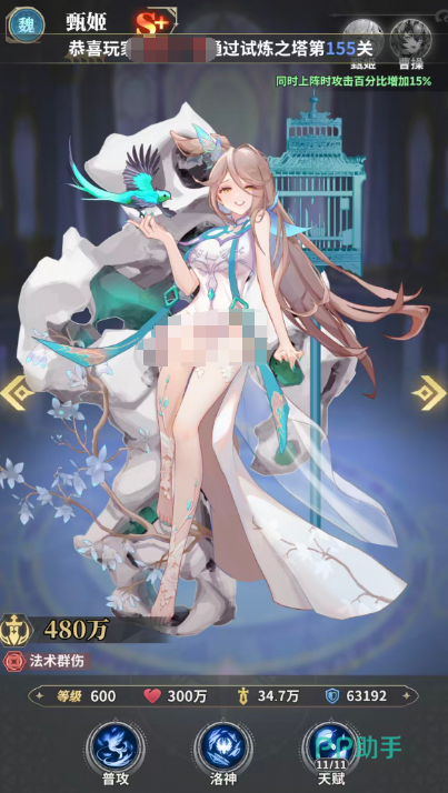 甄姬主打高机动群伤体系。其核心机制依赖“洛神”状态:当自身血量高于70%时,可获得该增益,使后续伤害提升20%。该状态不可叠加,仅生效一层,且需达到9星方可激活。此外,若甄姬在行动阶段未受到敌方任何攻击(即被对手忽略),将额外获得一次行动机会。这一机制使其在敌方集火目标明确、或我方具备强控/保护手段的阵容中表现尤为突出,属于典型的“越活越强”型节奏型群攻武姬。