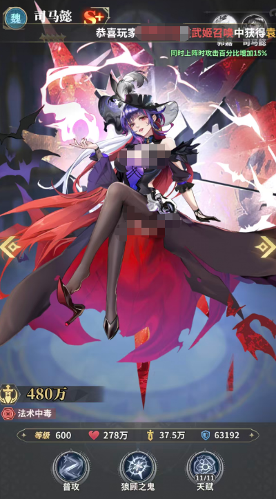 司马懿以中毒流体系见长,与郭嘉存在专属羁绊:双人同队时,全队法攻提升15%。其主动技能“狼顾之鬼”可造成85%群体法伤。关键机制在于星级成长——9星后,她所受伤害将由所在横排全体队友均摊,大幅提升生存容错;至11星时,技能命中可触发中毒效果;当升至13星,我方生命上限最高单位将获得5%最终减伤加成,进一步强化前排承伤能力,是兼具输出、承伤与团队增益的复合型法系核心。
