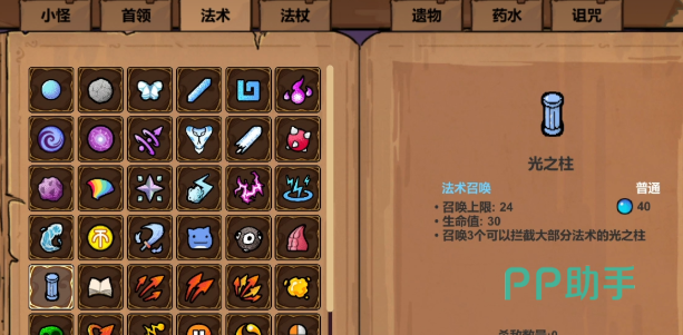 光之柱是一项核心防御类法术,能够召唤出三个具备拦截功能的光柱结构。每个光柱拥有30点生命值,最多可同时存在24个,在战斗初期能有效抵挡来自敌人的远程攻击或小怪骚扰。无论是清理群怪还是对抗首领的高伤害技能,它都能提供稳定的防护屏障,是前期不可或缺的生存保障。