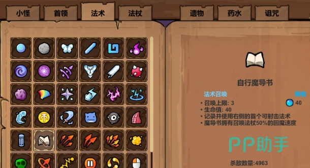辅助类法术方面,强力牵引与灵魂链接实用性极强。强力牵引不仅能提升暴击几率,还能使周围敌人承受相同伤害并实现双倍输出效果;灵魂链接则根据施法者当前生命值比例增加召唤物的最大生命值,并允许其自动进入下一关卡,大幅提升续航能力。此外,自行魔导书也极具便利性,可自动记录并释放右侧第一个法术,配合召唤流派使用,极大简化操作流程。