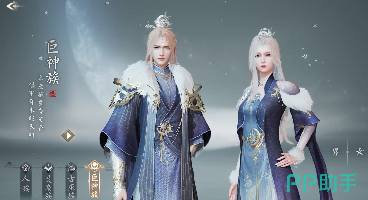 巨神族源自北境雪域,传承自夸父血脉,体格魁梧高大,天生具备战士气质。他们不仅是近战优势种族,更掌握星辰之力,擅长占星术数,并可短暂悬浮于空中,展现超凡脱俗的神族风范。喜欢霸气外观与星空主题的玩家不容错过。