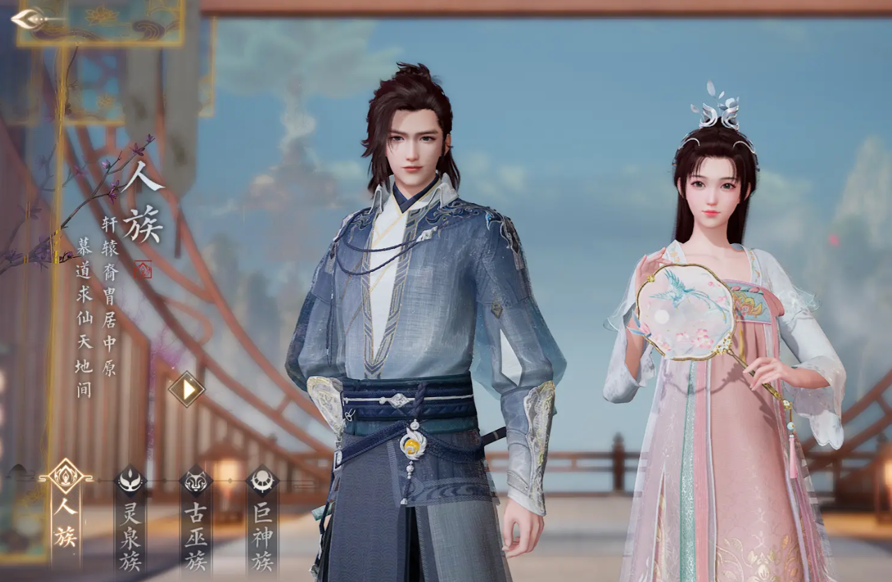 人族起源于中原大地,承载着深厚的文明积淀。他们追求力量与长生之道,始终不渝地行走于修仙之路上。人族外形标准匀称,贴近传统审美,适合偏好经典仙侠风格的玩家。此外,选择人族可在与各类人族NPC交互时更快提升好感度,有利于任务推进和剧情体验。