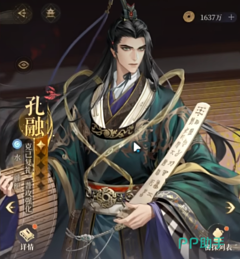 以上就是如鸢孔融介绍的内容了。对于玩家来说,如鸢孔融不仅是一位极具实用性的辅助型角色,还能为队伍带来持续的输出提升和生存保障。如果你正在考虑是否抽取这位角色,建议不要错过这个机会。他将是你战力提升的重要一环,特别在密探阵容中,孔融的强度和实用性不容小觑。