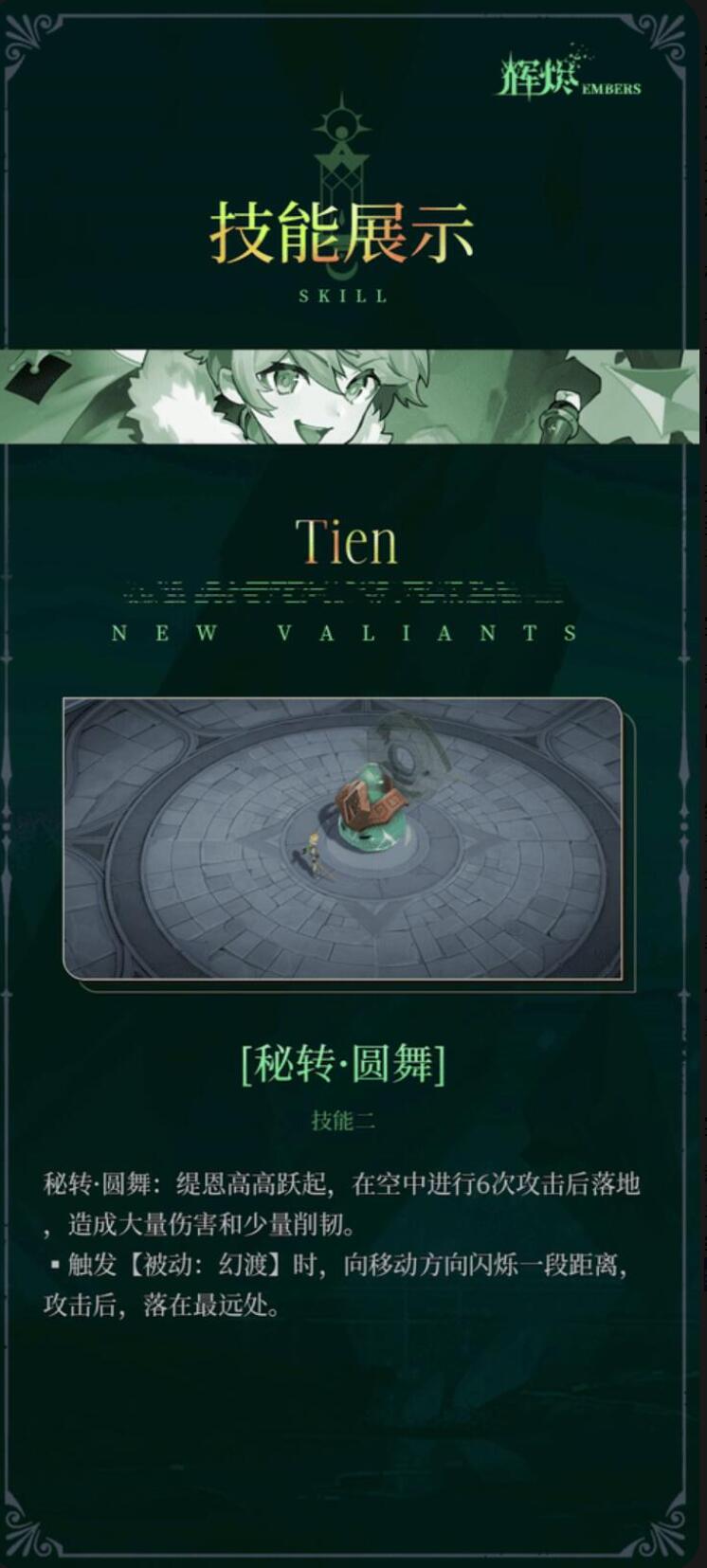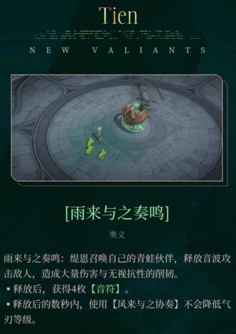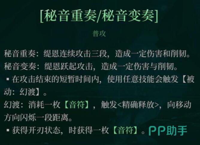 缇恩的基础普攻包含两种模式:一是“秘音重奏”三段连击,二是“秘音变奏”起跳攻击。最关键的是,在普通攻击后短时间内释放技能可激活被动效果,这一设定鼓励玩家打出流畅连招,类似部分MOBA游戏中对连贯操作的要求。一技能“秘转重音”具备高额伤害与强削韧能力,当触发幻渡状态时会进行闪现突进,既能规避敌方技能,也可用于追击目标,实战中机动性极佳。