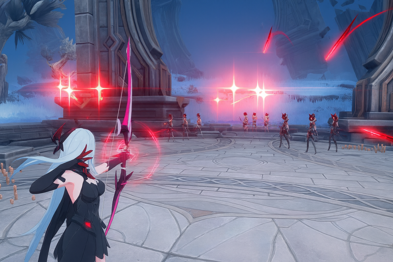 茵布拉花序武器在箭矢命中敌人后,会在目标周围生成花雾领域,对范围内的敌人造成持续伤害并附带减速效果。这种机制让武器不仅具备输出能力,还兼具一定的控场功能。在多人副本或团队战中,茵布拉花序武器可以帮助队伍拉开距离,限制敌人移动,让其他队友更容易命中技能或展开追击。