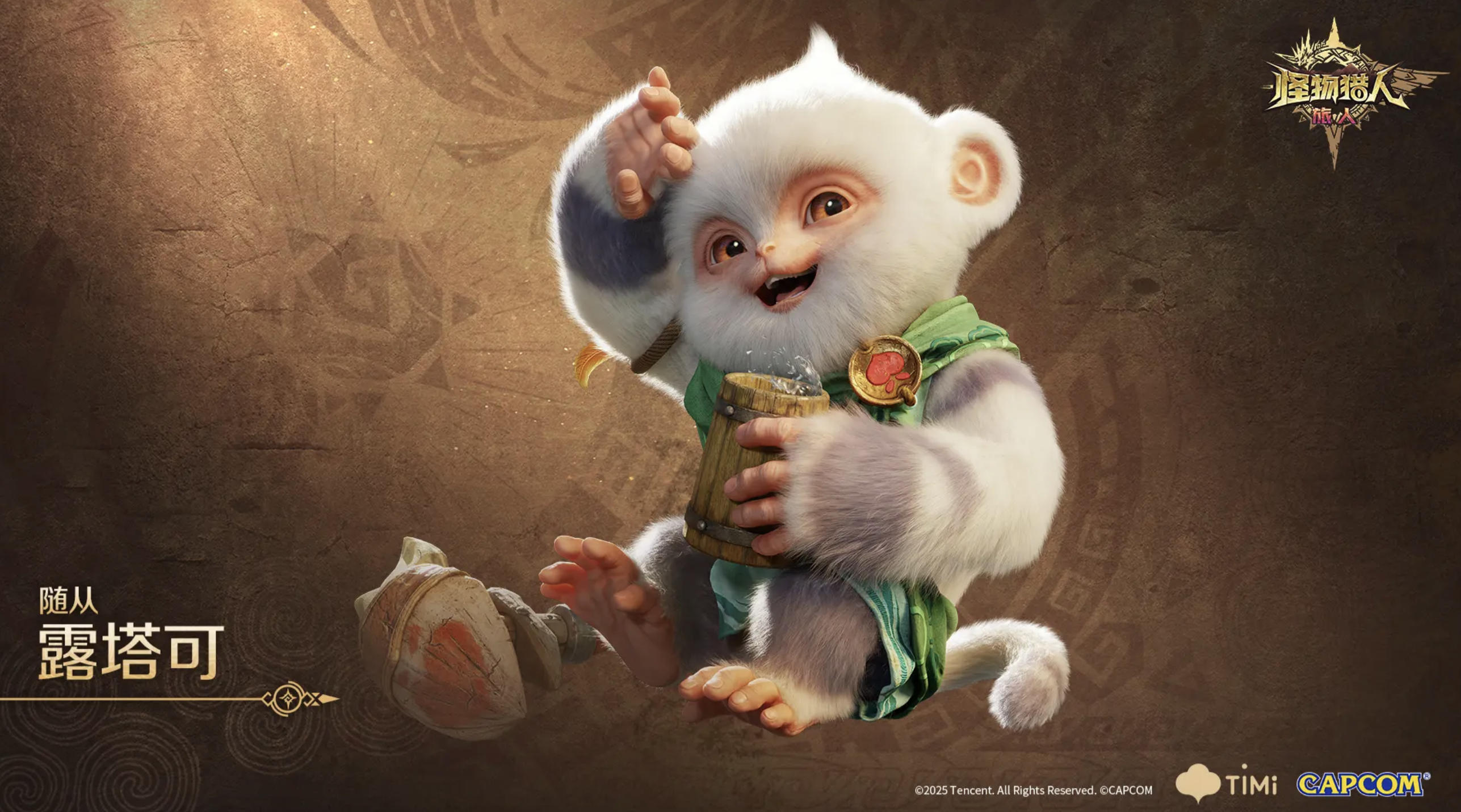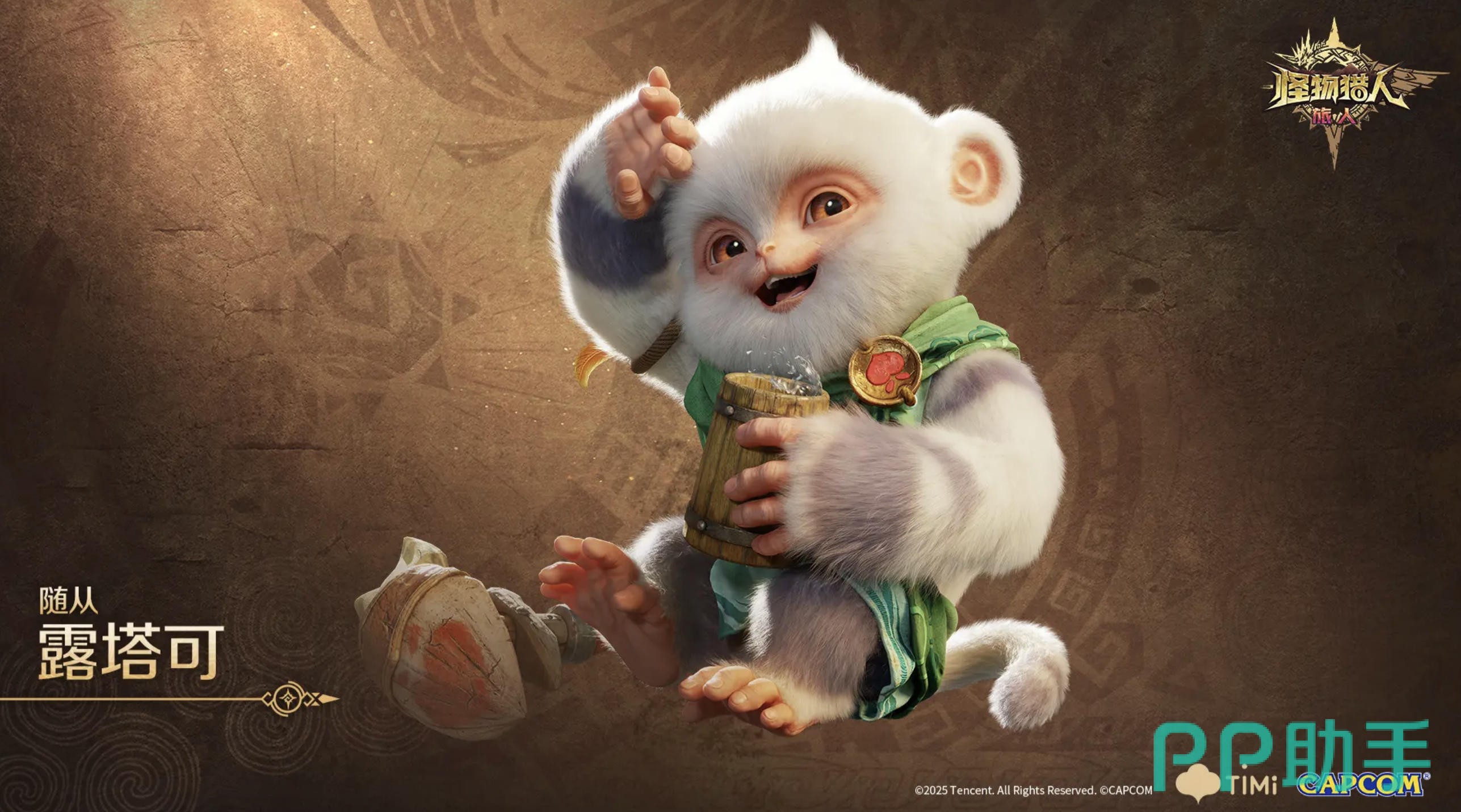 除了实战价值外,露塔可的外形也深受玩家喜爱。其通体覆盖着洁白蓬松的绒毛,整体造型圆润讨喜。一双深棕色的大眼睛透露出机灵与纯真,面部常带着温和笑意,展现出极强的亲和气质。它们通常身披绿色小斗篷,胸前佩戴特制徽章,手中握持木杯或小型器械,整体形象既活泼又聪慧,与其智慧型随从的定位完美契合。