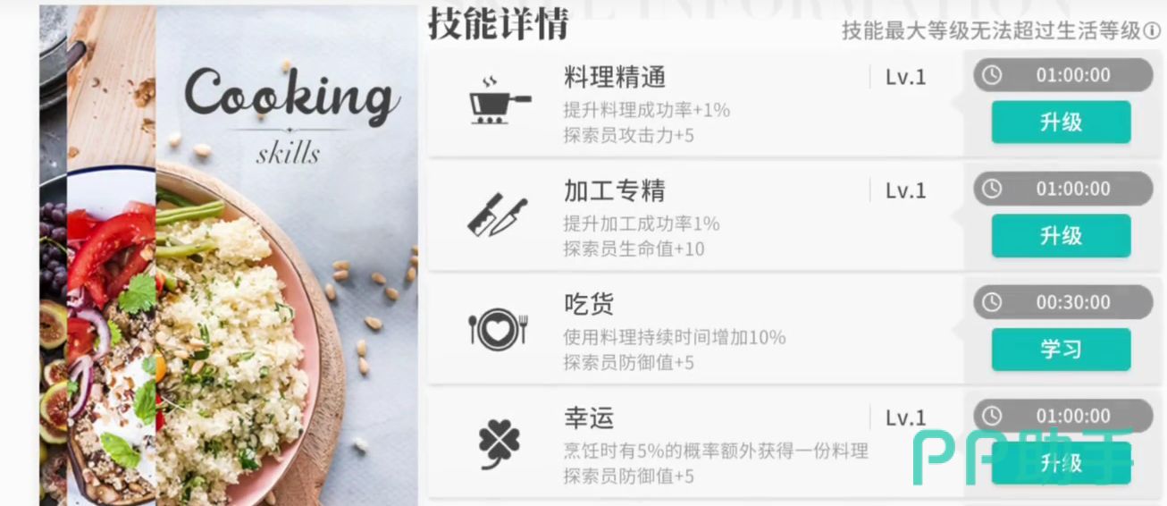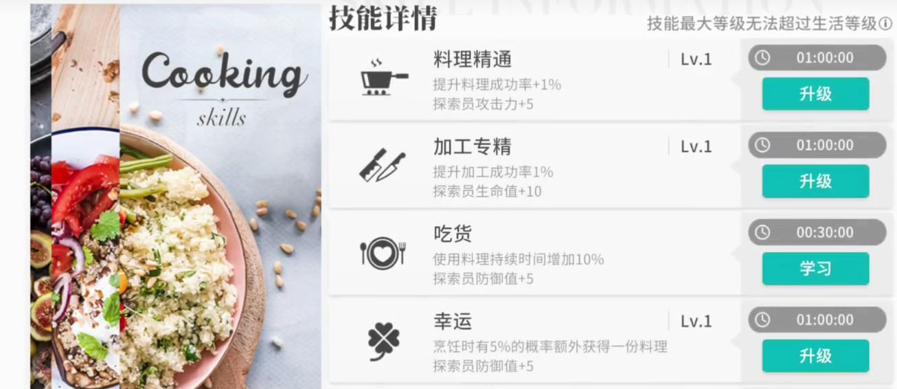 在游戏中玩家想要进行烹饪就必须获取到解锁食谱的材料,目前游戏中食物的等级为8级,只有完成料理的升级任务才能制作对应等级的食物。这一点很关键,越是高级的食物带来的效果越好,同样获取的食材就越珍贵。