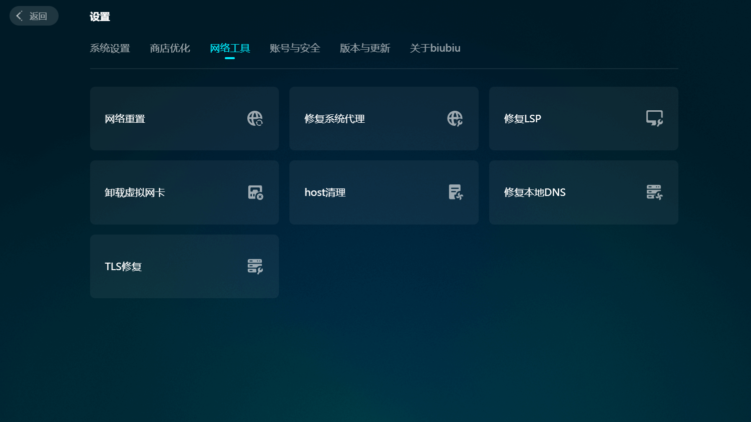 biubiu还有实用的网络工具箱,智能卸载多余虚拟网卡、重置网卡,彻底解决网页打不开、网卡异常崩溃等问题。对于经常在游戏商店购物的玩家来说,biubiu支持的商店优化功能,能让你购物时告别加载缓慢、支付卡顿,轻松选购心仪的游戏道具。