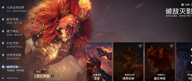 “破敌面影”活动要求装备等级达标后挑战指定Boss,通关即发放固定数量的世界晶珀,成功率高且无重复消耗。另一常被忽略的是“共鸣试玩”系统:除主界面显示的试玩任务外,需主动点击“更多共鸣”按钮展开完整列表,逐一完成全部英雄试玩(共200个),方可领满对应奖励。该任务不仅提供晶珀,还同步产出大量英雄经验,综合收益显著优于常规日常。