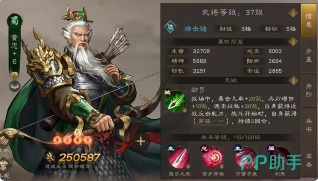 黄忠在蜀国阵营中,是重要的输出力量之一,将其拉满后,能够在战斗中提供稳定的远程输出,与其他武将形成有效的配合,在黄忠培养完毕之后,接下来就可以着手刷关银屏,关银屏的加入,能够进一步强化蜀国阵营的打桩能力,她与关羽、黄忠等武将之间能够产生良好的协同效应,而在蜀国阵营中,续航能力最强的组合当属关氏父女。
