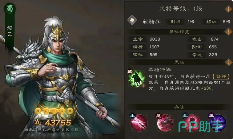 刘备的天赋具备一次性增伤的效果,而且在游戏中后期开启大招之后,还能够持续为队友提供增伤支持,除此之外他还能无条件提升群体队友的爆伤属性,其技能还可以在大范围内为队友增加幸运值和暴击率,可以说如果关羽是蜀国阵营的输出核心,那么刘备就是当之无愧的辅助核心,对于小氪玩家而言,由于资源相对有限,所以在前期并不建议对赵云进行培养。