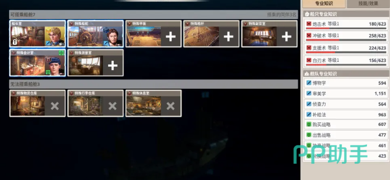 角色技能分为两大基础维度:主动型“技术”与被动型“专业知识”。前者需手动释放,作用于战斗、探索或特殊交互场景,具备明确战术指向;后者则持续生效,主要为船只提供属性增益,如耐久、航速、载货量等底层数值加成。每项技能最多可升级4次,每次升级均会强化核心效果,并解锁更高阶的功能表现。值得注意的是,同一艘船若搭载多名具备相同技术类型的伙伴,该技术的总威力将产生叠加增幅——因此在组建船员阵容时,应优先规避低效重复,聚焦技能功能互补性。当前技术体系划分为三大类:决斗技术、海战技术与提督命令。根据实战反馈与系统机制设计,推荐加点优先级为:决斗技术 → 海战技术 → 提督命令。