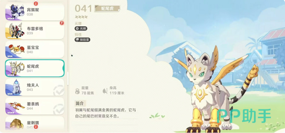 在探索崩坏因缘精灵中各类精灵特点的过程中,若玩家希望获取具备独特属性的宠物,蛇尾虎无疑是一个值得考虑的选择。作为兼具蛇与虎双重特征的生物,它不仅外形极具辨识度,还拥有探险家的独特天赋,在实战中的表现也相当亮眼,因此在阵容搭配中的出场频率较高。
