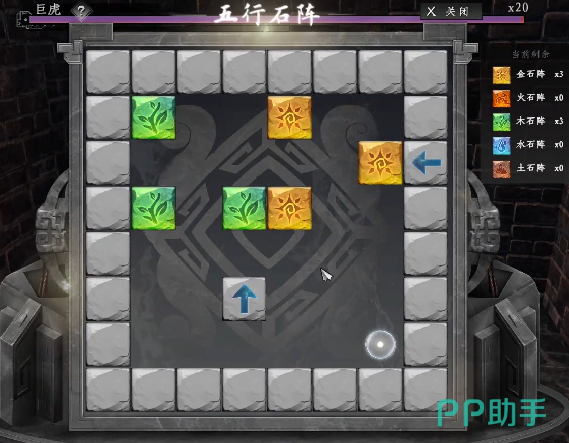 誓盟碑三件套被封存在地宫这一层的封闭房间内。要打开房门,需先前往邻近的小房间寻找机关装置。该机关为五行石阵解谜类型,玩法类似于三消机制——通过带有箭头的石块移动元素石,达成全部消除即可破解。每次重置谜题布局都会变化,且允许无限次尝试,只要耐心操作便可成功。解谜完成后与机关交互,再返回原本锁闭的房间,此时门已开启,宝箱就在其中。开启后即可获得三件套装:衣服【铭玉岳清】、鞋子【归钰】以及腰带【夕杰】,均为五阶完美品质装备。