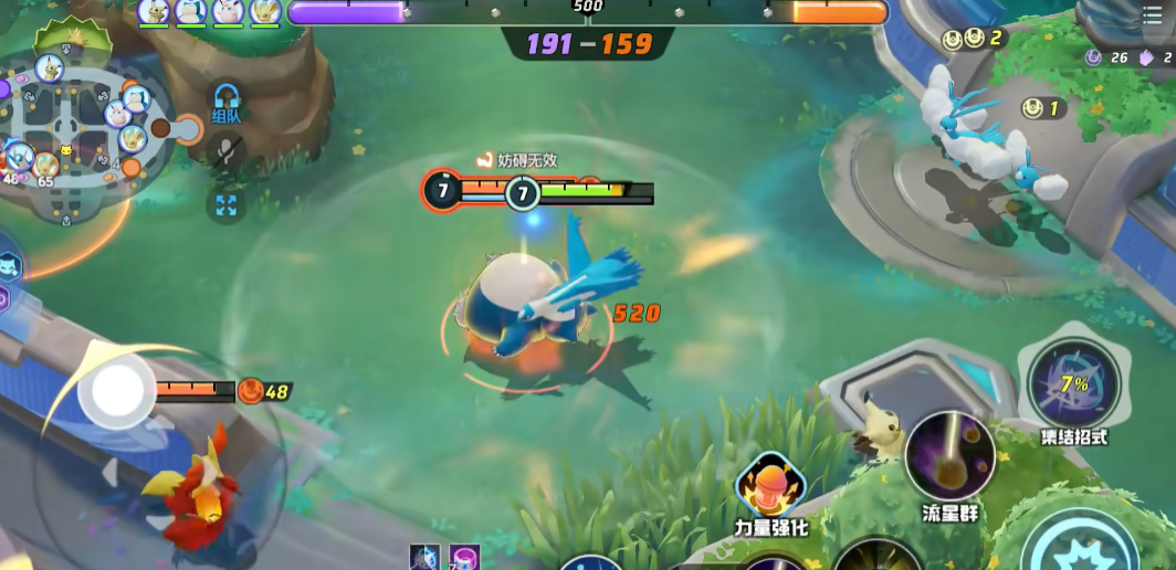 技能三“龙之波动”:朝指定方向短距离冲刺,并强化下一次普通攻击。强化普攻会从口中发射一道直线冲击波,对路径上所有敌人造成伤害。根据“无限之力”的层数,还会对首个命中目标额外发射多枚念力弹。首颗念力弹造成完整伤害,后续每颗递减10%。每当“无限之力”积累满25层,念力弹数量增加一枚。另一种技能分支则为召唤流星群从天而降打击敌方。大招释放时,自身获得护盾保护,并锁定一名敌方宝可梦连续发射能量子弹进行追踪打击。