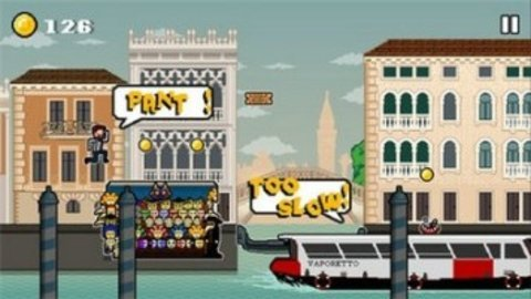 将通勤族最熟悉的紧张时刻化作一场刺激的竞速挑战。玩家扮演一名因睡过头而慌忙出门的打工人,在熙熙攘攘的街道上狂奔,目标只有一个,赶上那辆不能错过的公交车。道路并不平坦,行人匆匆穿行,洒水车喷出突如其来的水柱,外卖小哥的电动车从身旁疾驰而过,甚至连路边的小狗都可能成为意想不到的障碍。