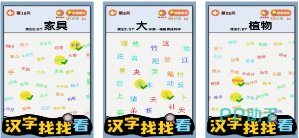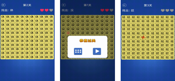 找不同汉字的游戏小编暂且发现三个,再推荐两款其他文字汉字主题手游吧。